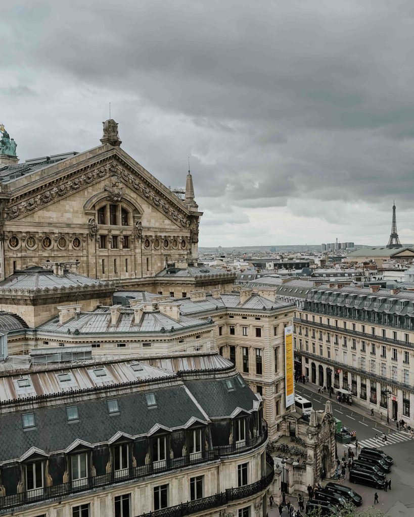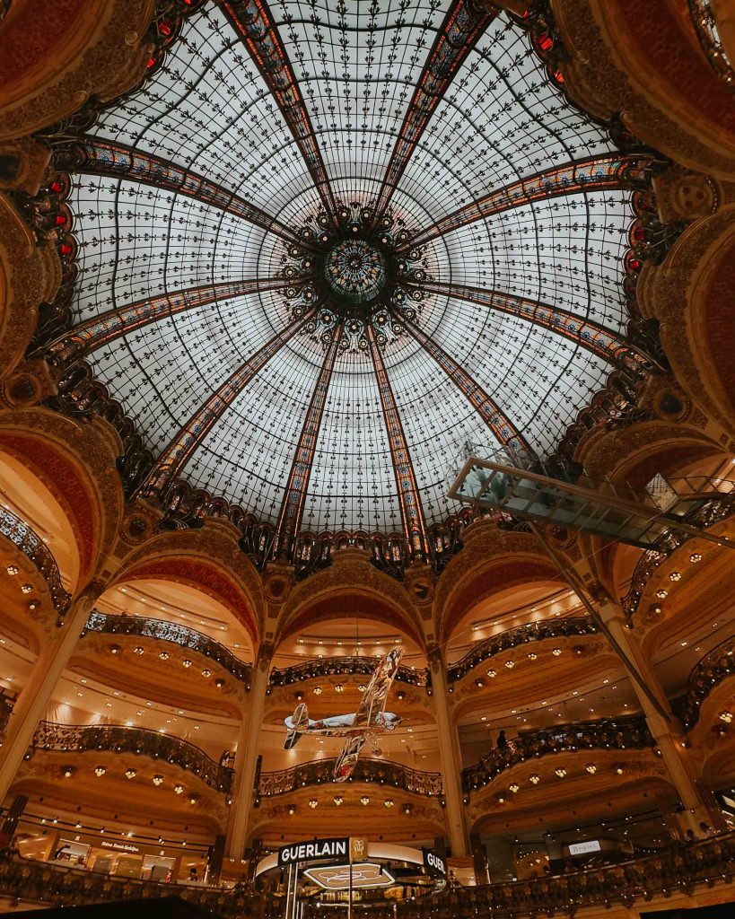 In the evening, head back to central Paris. Head to Galleries Lafayette for some incredible views from the rooftop, the inside is pretty sweet too. Two photos below which show the inside and the view from the rooftop.
