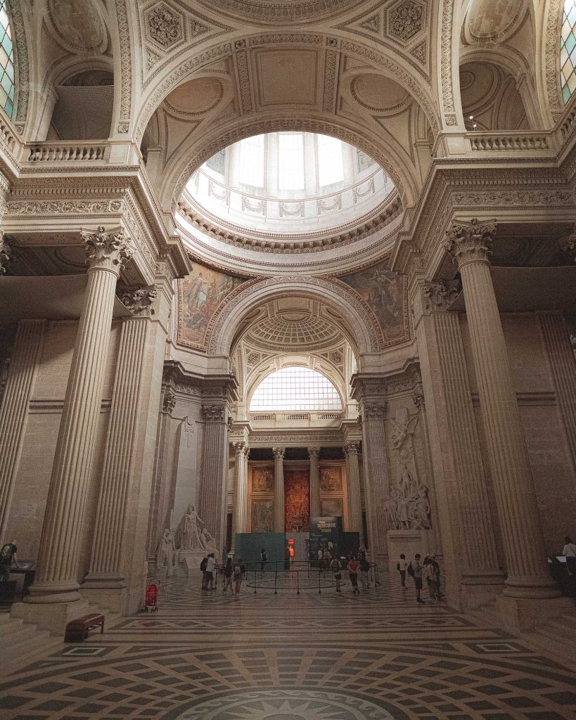 The Pantheon, a neoclassical mausoleum, is located in the Latin Quarter. It houses the remains of many notable figures from French history, including Voltaire, Rousseau, Victor Hugo, and Marie Curie.