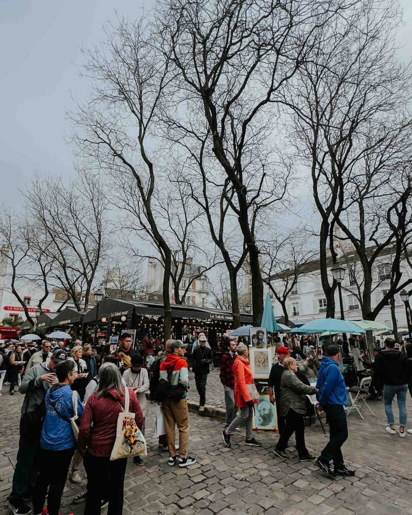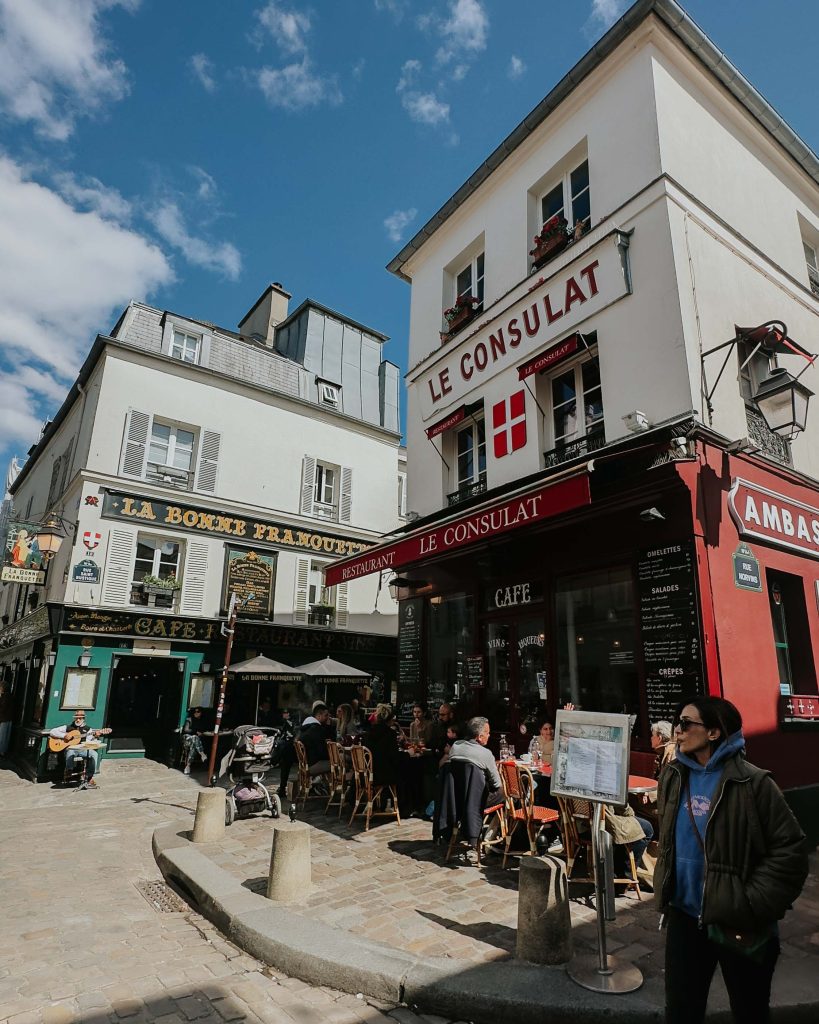 Walk down from there to the Place du Tertre, Montmartre’s iconic square filled with artists and cafes. The square has a long history dating back to the early days of Montmartre. It was once a hub for the area’s thriving artist community in the late 19th and early 20th centuries. Montmartre became famous as the home and inspiration for numerous renowned artists, including Pablo Picasso, Vincent van Gogh, and Amedeo Modigliani. Many of these artists frequented Place du Tertre.